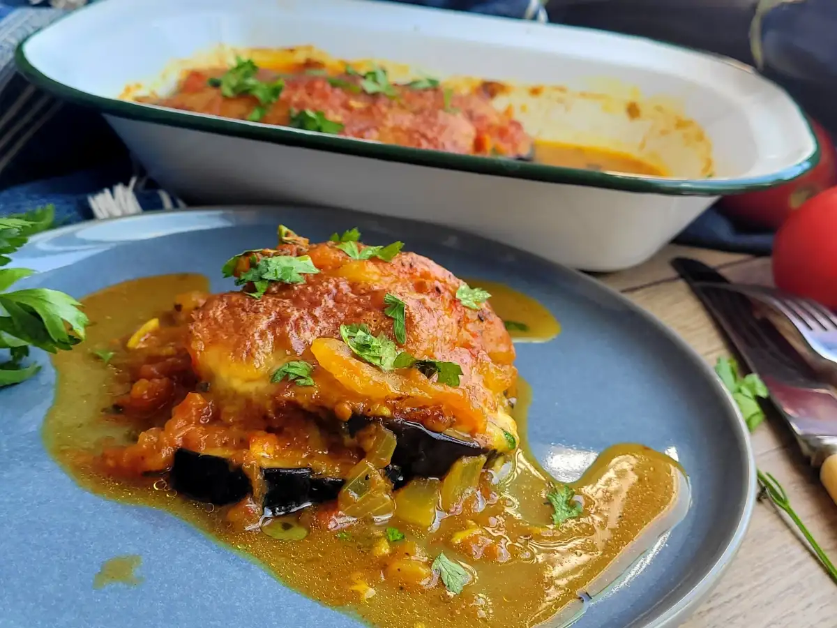 Патладжан на фурна с доматен сосСервирайте с наситнен пресен магданоз готовия патладжан на фурна с доматен сос....